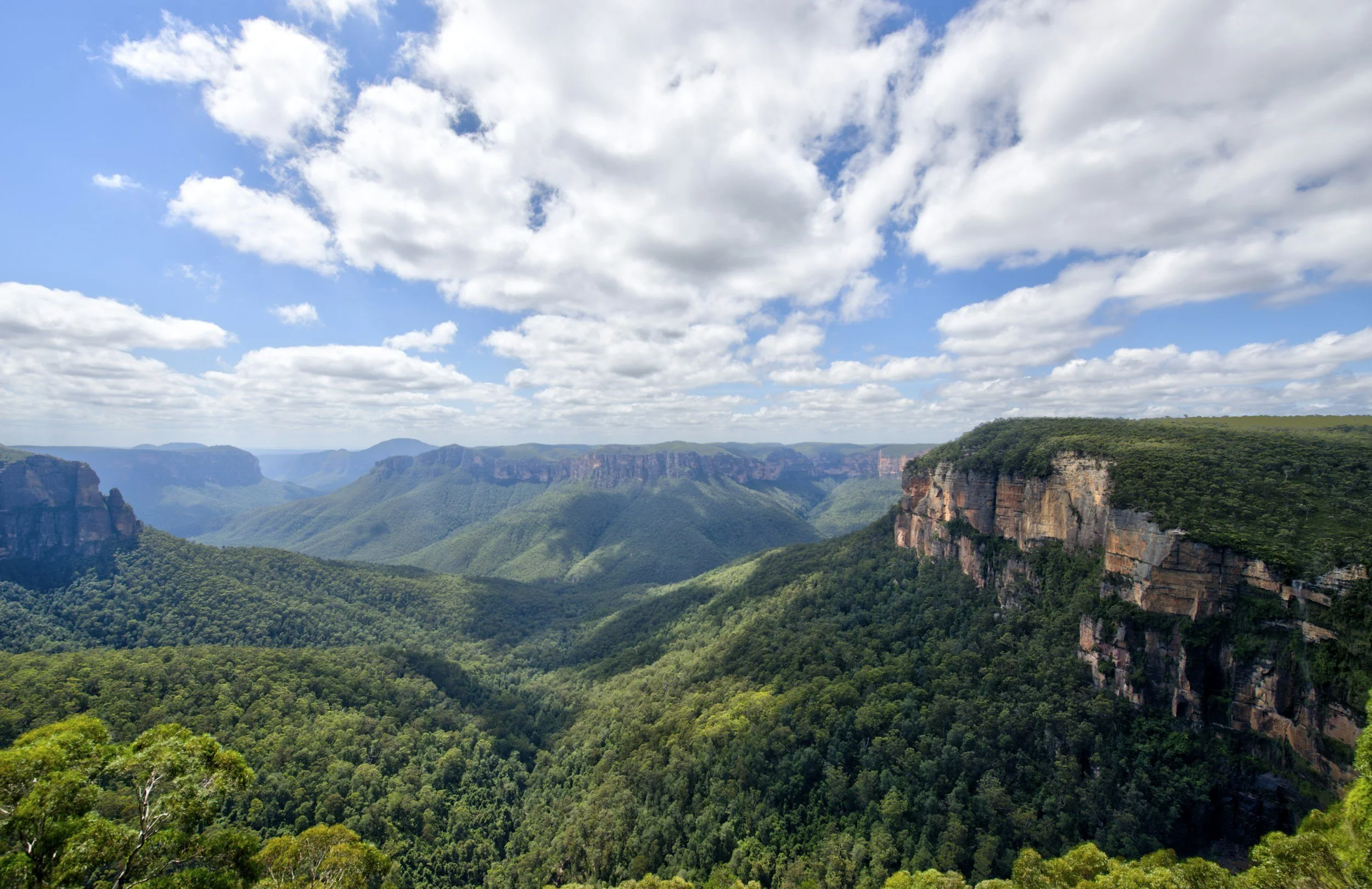 À seulement 2 heures de Sydney, c’est la bouffée d’air pur des citadins. Imagine des falaises vertigineuses, des forêts d’eucalyptus à perte de vue et des cascades majestueuses. C'est un terrain de jeu infini pour les amateurs de randonnée.